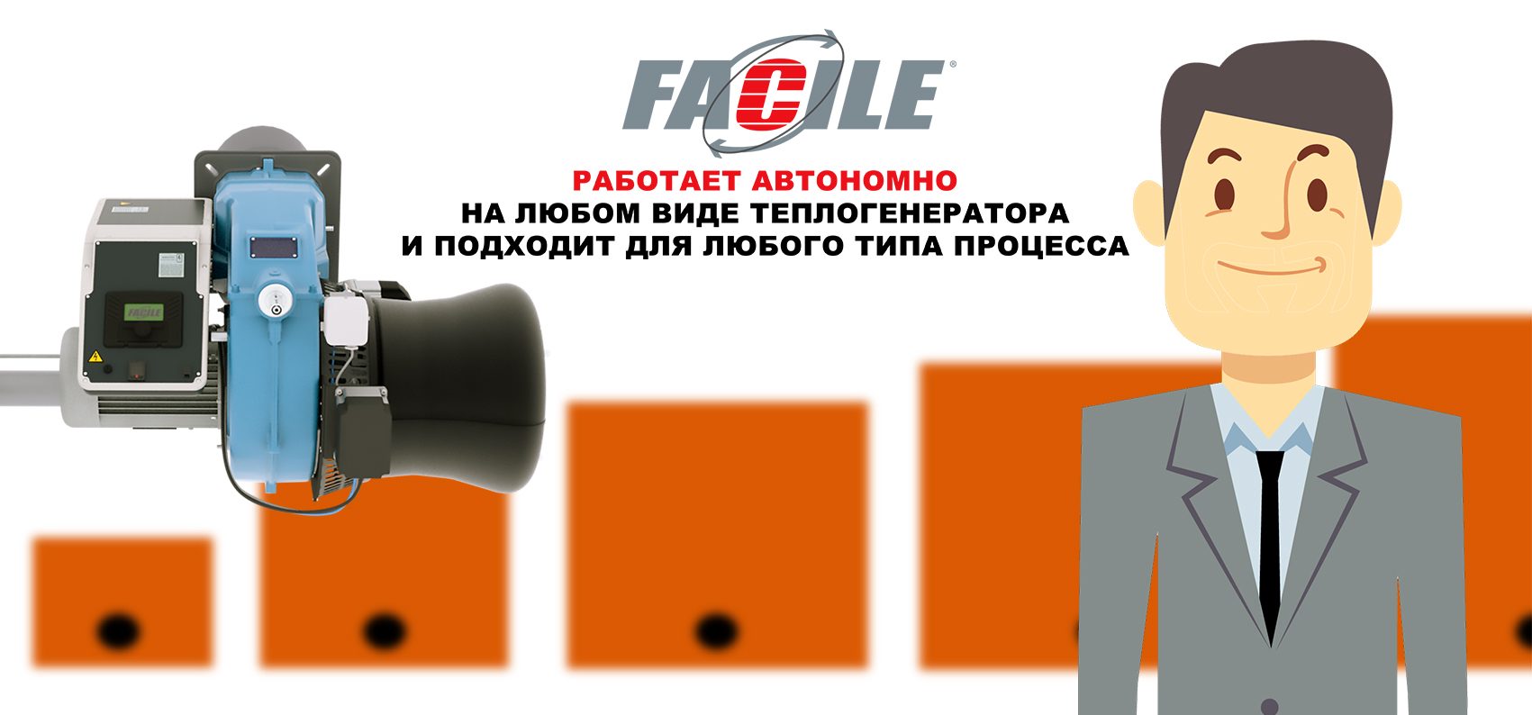 FACILE с помощью датчиков адаптирует работу горелки на любом типе теплогенератора, предназначенному как для промышленного, так и для гражданского процесса.